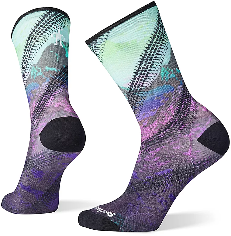 The print on these women's cycling socks will remind you of the mountains, whether you're actually up in them or wishing you were. Made from responsibly sourced Merino wool, they're purpose-built for comfort and durability: these socks feature Shred Shield technology, the 4 Degree elite fit system for a performance-oriented fit, and a Virtually Seamless toe to reduce toe box pressure. Plus, they're breathable and odor-resistant, which your feet (and your riding partners) will thank you for. Grab a pair of our Women's Bike Zero Cushion Mountain Print Crew Socks for your next biking adventure!